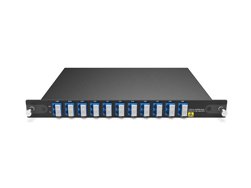 Le multiplexeur/démultiplexeur DWDM 8 canaux 150 GHz est conçu par FIBERWDM, longueur d'onde de C50-H60 (1537,397 nm-1529,163 nm), conformément à la grille ITU 150 GHz, il maximise la capacité de la bande C.