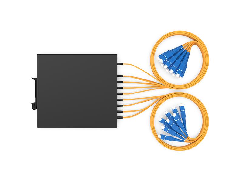 | 1P16-DG02U-2010 | Boîtier de montage DIN fibre optique 1x16 PLC SC/UPC 2,0 mm 1,0 m 120 x 110 x 20 mm |