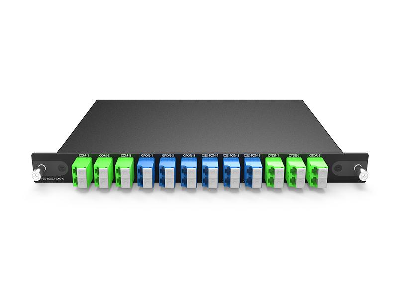 Boîtier LGX 215 x 150 x 20 mm, 6 x 3 canaux WDM GPON XGS-PON et OTDR, PON LC/UPC, COM et OTDR LC/APC |