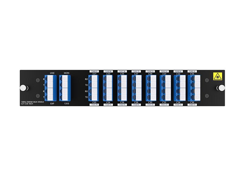 Le module DWDM 16 canaux est entièrement passif et intégré au boîtier LGX. Il s'installe dans un rack 1U à 2 emplacements et présente une perte d'insertion inférieure à 3,5 dB. Associé à des amplificateurs DWDM et à un dispositif DCM, il permet la transmission longue distance au sein d'un système de transfert DWDM 8 canaux.