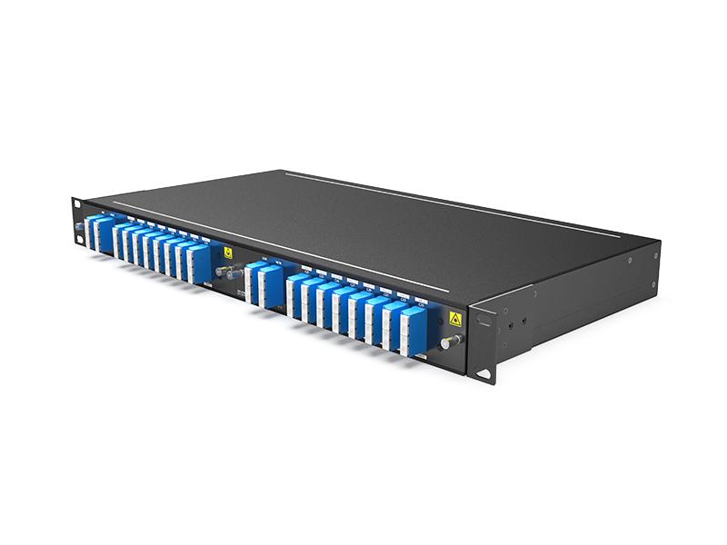 Multiplexeur/démultiplexeur DWDM double fibre 16 canaux C21-C36 avec 1310 nm, ports moniteur et EXP, lecteur LC/UPC, boîtier LGX et rack 1U à 2 emplacements