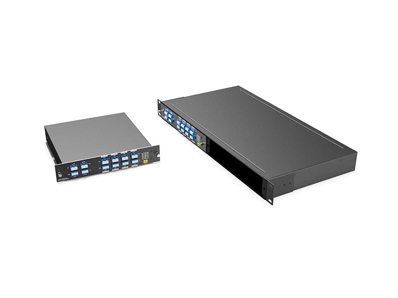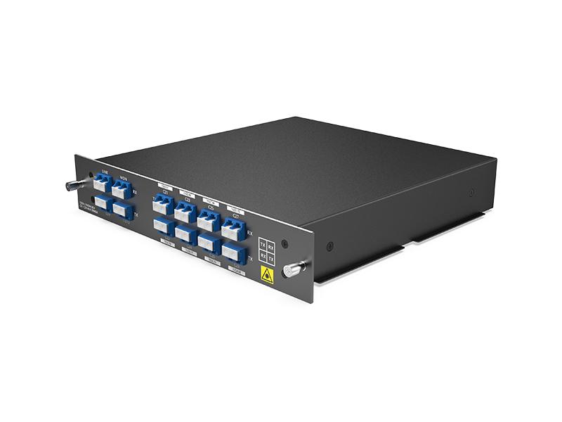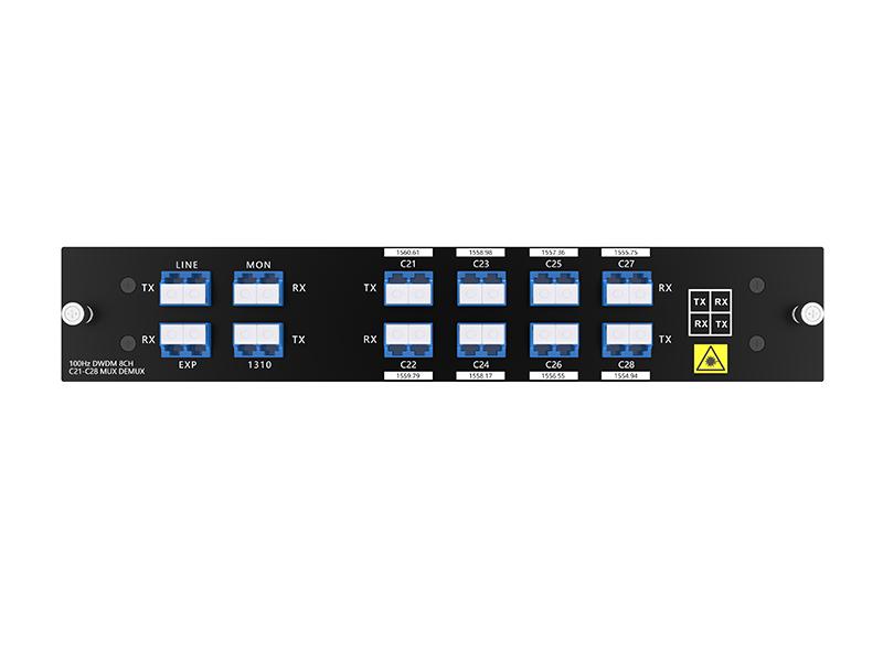Le module DWDM 8 canaux est entièrement passif et intégré au boîtier LGX. Il s'installe dans un rack 1U à 2 emplacements et présente une perte d'insertion inférieure à 2,4 dB. Associé à des amplificateurs DWDM et à un dispositif DCM, le système de transmission DWDM 8 canaux permet une transmission longue distance.