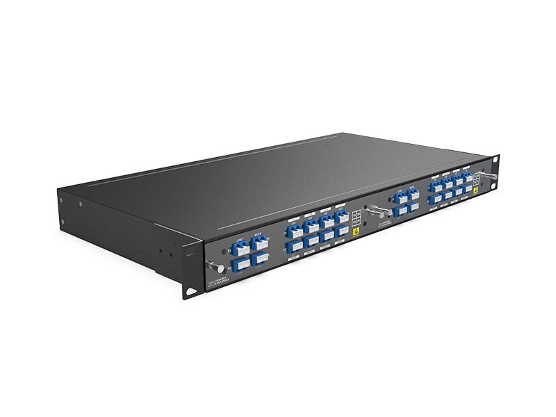 8 canaux DWDM + 1 canal 1310 nm MUX DEMUX, prend en charge 8+1 canaux de différence de trafic sur deux fibres optiques pour la transmission point à point.