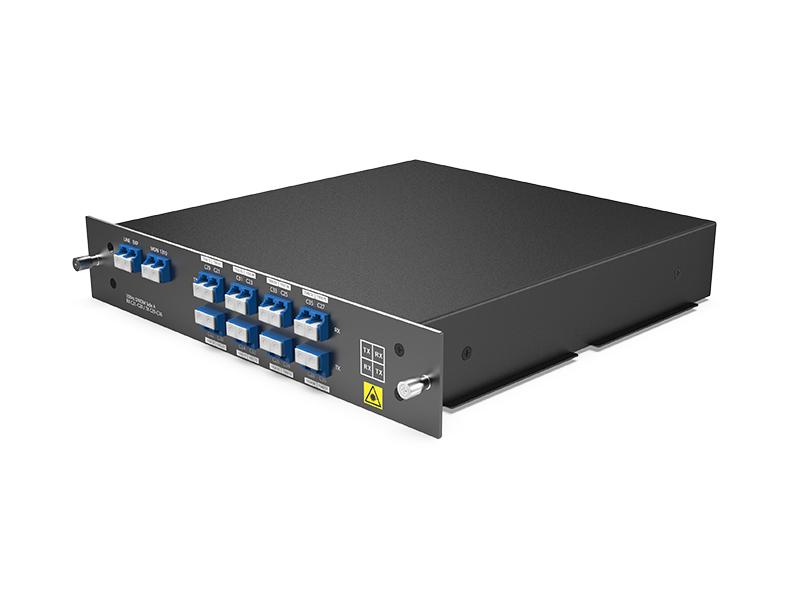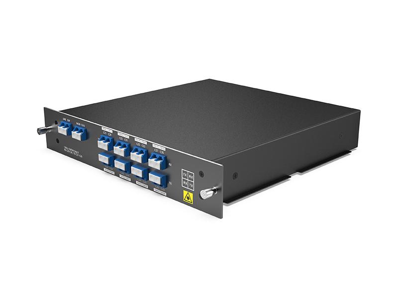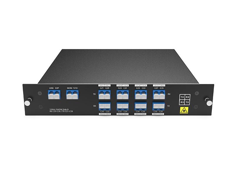 Le multiplexeur/démultiplexeur DWDM 8 canaux (16 longueurs d'onde), conçu par FIBERWDM, fonctionne par paires. Côté A, les longueurs d'onde sont : réception (RX) de C21 à C28 (1560,61 nm à 1554,94 nm) et transmission (TX) de C29 à C36 (1554,13 nm à 1548,51 nm). Côté B, les longueurs d'onde sont : réception (RX) de C29 à C36 (1554,13 nm à 1548,51 nm) et transmission (TX) de C21 à C28 (1560,61 nm à 1554,94 nm). Associé à des amplificateurs DWDM et à un dispositif DCM, ce système de transmission DWDM 8 canaux permet une transmission longue distance sur une seule fibre.