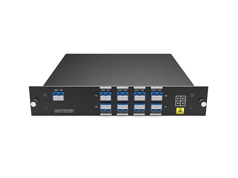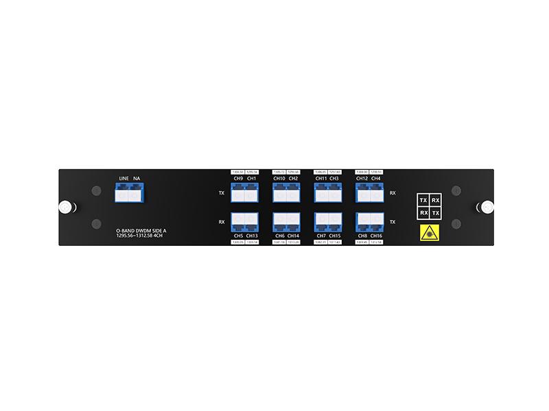 Le multiplexeur/démultiplexeur DWDM en bande O à 8 canaux (16 longueurs d'onde) sur fibre unique, conçu par FIBERWDM, est un dispositif DWDM entièrement passif. Il supporte de faibles pertes d'insertion (ports de longueur d'onde < 4,8 dB). Les longueurs d'onde utilisées sont 1295,56/1296,68/1297,80/1298,93/1300,05/1301,18/1302,31/1303,45/1304,58/1305,72/1306,85/1308,00/1309,14/1310,28/1311,43/1312,58 nm, permettant la transmission de 8 canaux sur une seule fibre.